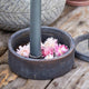Moss green dustpan, which features a sturdy handle fashioned out of beechwood.